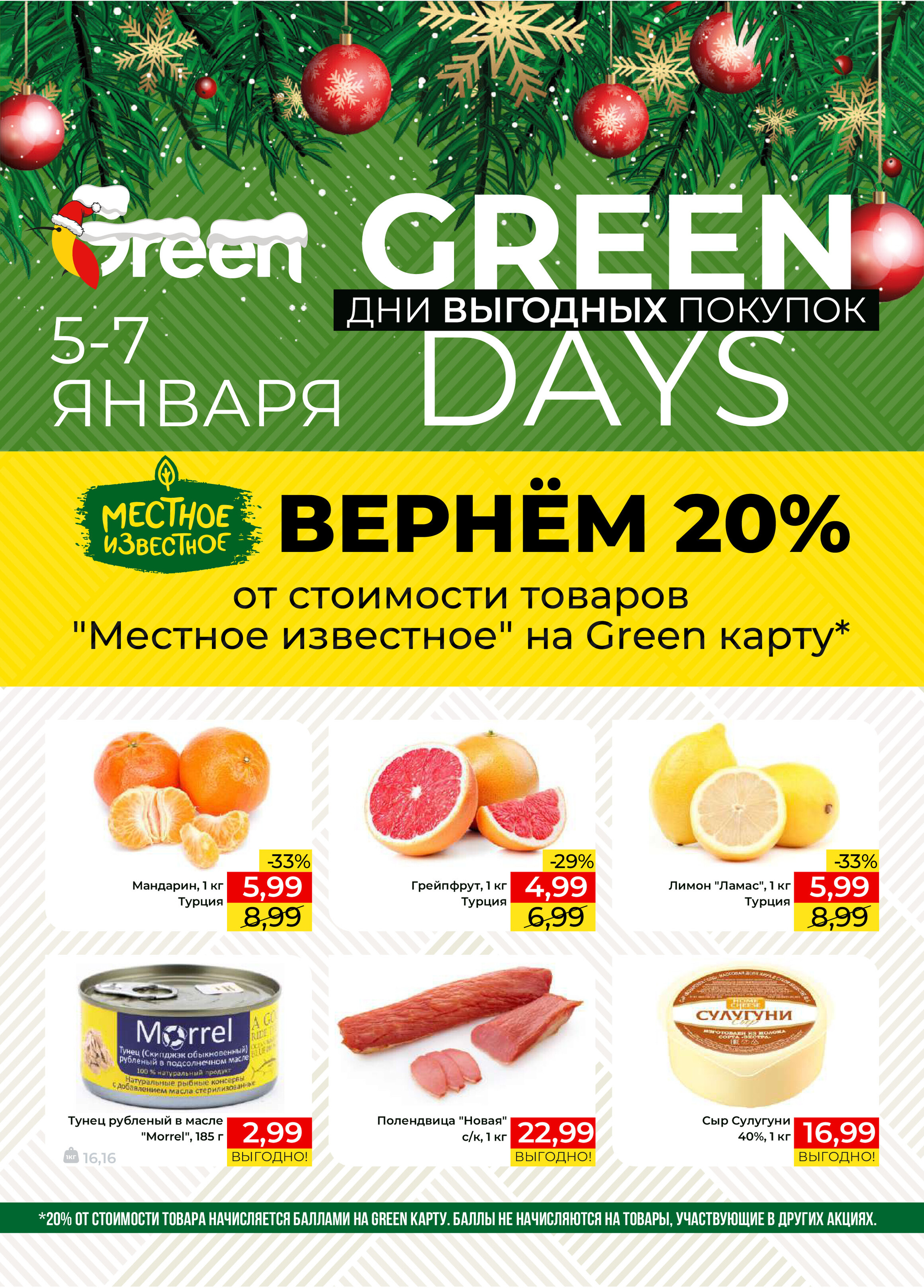 Акция "Green days" в "Грин" (Green) с 5 по 7 января 2024 года Рубрика: Акции и скидки в магазинах "Грин" Автор: skidka.by Дата: 05.01.2024Закончилась Скидки до 55% на определенный ассортимент товаров для держателей карты "Green"! Только с 5 по 7 января в сети магазинов "Грин" пройдет акция "Green Days".Еще больше товаров в листовке магазинов Green ниже: Теги:Брест,Витебск,Гомель,Гродно,Могилев,Минск,Грин в Минске,Грин в Борисове,Грин в Бресте,Грин в Витебске,Грин в Гомеле,Грин в Гродно,Грин в Могилеве,Грин в Солигорске,Грин в Полоцке